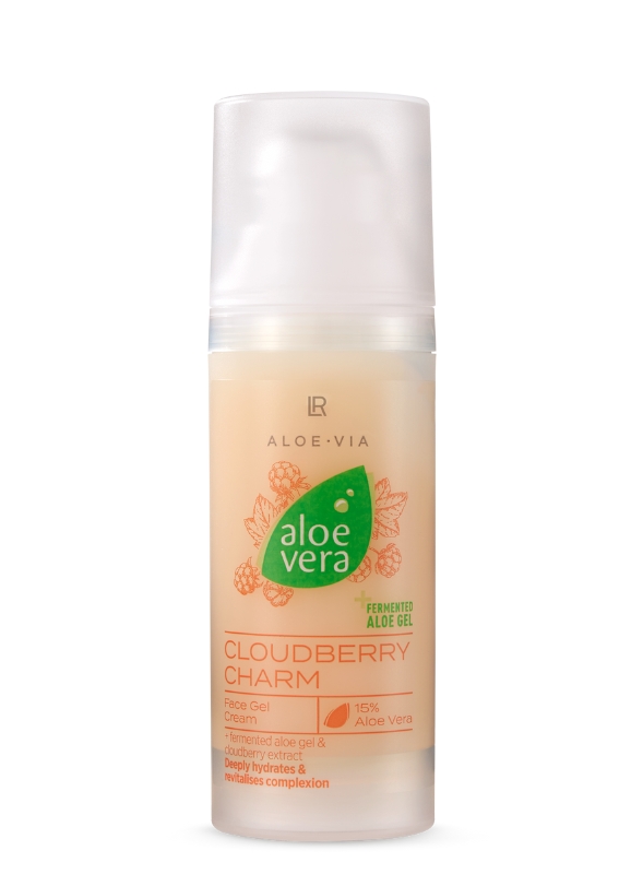 Aplica o LR Aloe Via Aloe Vera Cloudberry Charm Face Gel Cream na tua pele do rosto de manhã e à noite.
